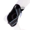 Werking: de twee stevige harde baleinen die langs de enkelbotjes (malleoli) lopen zorgen samen met de twee verstevigende elastische banden en de vetersluiting voor een hoge mate van stabiliteit in de enkel. Deze brace voorkomt dat de voet naar binnen of buiten kan kantelen.